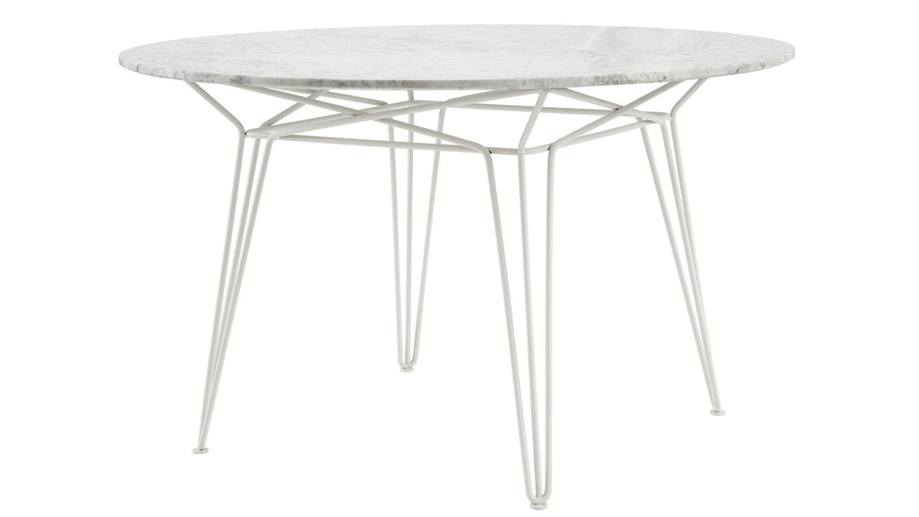 The Parisi Table's hair-pin legs and tapering waist not only result in a distinctive silhouette, but are also the basis for its strength and timeless style. Each of the table's four legs is fluidly connected to each other via an intersecting sub-frame made from powder-coated stainless steel. While designed for outdoor use, Parisi's refined profile makes it also suitable for a life indoors.